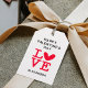Ein romantisches und zeitgenössisches Valentinstag-Geschenkschild mit dem Wort "Liebe" in einem modernen, hellroten Schriftart mit einem niedlichen Herz für den Buchstaben "o" über einem schlichten, weißen Hintergrund. Sie können den Tag ganz einfach personalisieren, indem Sie Ihren Text und Ihren Namen an der Vorderseite und Ihre persönliche Nachricht an der Rückseite hinzufügen. Alle Farben und Texte können leicht personalisiert werden. Auch geeignet für andere besondere Veranstaltungen wie Geburtstage, Hochzeitsfeiern und vieles mehr.