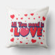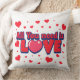 Embrace the power of love with this charming square pillow, featuring the iconic satz "All You Need is Love" in bold red and blue typography. The white background is adorned with playful red hearts, making it a delightful addition to any living space. Soft, Cozy, and stylish, this pillow is perfect for expressing your affection or adding a romantic touch to your home decor.
