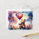 Valentine Teddy-Bär mit einem herzförmigen Ballon Postkarte