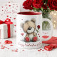 Valentine Teddy Bear with Rose and Hearts Tasse