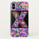 X fett Alphabet Buchstaben Anfangsdesign mit Herz. Whimsikisches vibrierendes und künstlerisches Gemälde mit bunten Konfetti. Mythische Liebe zwischen Harlequin und Columbine, Akrylmalerei inspiriert von Venezianischen Federmasken und Commedia dell'arte - Venedig. Lila, rosafarbene, grüne Farben, Sondergeschenke von Zazzle machen auf Zazzle maßgeschneiderte Geschenke.