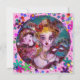 Whimsikisches vibrierendes und künstlerisches Gemälde mit bunten Konfetti. Mythische Liebe zwischen Harlequin und Columbine, Akrylmalerei inspiriert von Venezianischen Federmasken und Commedia dell'arte - Venedig. Helle, lila rosa, gelbe grüne Farben.