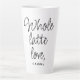 Feiern Sie Liebe und Freundschaft mit dieser Valentinstag vergangene Tasse, mit dem Text 'Vollständige latte Liebe' in schwarzer Schrift Kalligraphie auf weißem Hintergrund. Personalisieren Sie dieses herzliche Geschenk mit Ihrem Namen! Exklusiv für Sie entworfen von Happy Dolphin Studio.