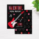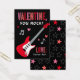 "Valentine, You Rock" Valentintagskarten für coole Kinder, die Liebe zu Rock und Roll! Die Flachkarte bietet eine rote Gitarre und Sternenmuster mit Herz- und Musiknote Akzenten und individuelle Name auf schwarzem Hintergrund.