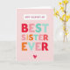 This Valentine's Day card features the big message “BEST SISTER EVER” stacked in three lines across a soft blush pink background. The letters are thick and slightly worn-looking, with each one in a different warm or cool color like red, coral, orange, and teal. Above the main words, “HAPPY VALENTINE’S DAY” appears in smaller red letters near the top, set like a simple banner. A single red heart sits centered near the bottom, finishing the layout in a sweet, straightforward way. The overall look feels cheerful and affectionate, like a hug in card form 🥰. It’s a meaningful choice because it puts sisterly love front and center without trying to be romantic or over-the-top. Giving it says, clearly and kindly, “I appreciate you and I’m glad you’re my sister” ❤️.