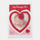 Erstellen Sie das perfekte Valentinstag Foto Geschenk. Dieses Küchentücher hat das Aussehen einer Süßkarton mit roter, rosa und weißer Farbe. Der herzförmige Rahmen ist für Ihr eigenes Foto bereit. Fügen Sie oben Ihre eigene benutzerdefinierte Nachricht in weißer Schrift hinzu. In der unteren Ecke gibt es eine zweite Nachricht in roter Schrift.
