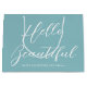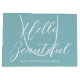 Personalized gift bags add an extra touch of luxury to any gift. This stylish design features "Hello Beautiful" in brush script typography, and can be customized with the recipient's name and a "Happy Valentine's Day" message. A versatile template that can be adapted for a birthday, bridal shower, bachelorette party, Galentine's Day, and other special occasions. Its simple, elegant design is a unique addition to your gift wrap, and a lovely choice for a girlfriend, wife, partner, daughter, or best friend. Available in either a matte or glossy finish. Printed colors: blue, blue-green turquoise and white, or customize the colors with the design tool.