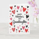 This Valentine's Day card features the message “HAPPY Valentine’s DAY Granddaughter” as the main focus, set against a white background. “HAPPY” and “DAY” appear in black, uppercase print letters, while “Valentine’s” is written in a flowing black cursive style through the middle. “Granddaughter” sits underneath in a smaller red print, making it feel direct and caring. Around the words, a cluster of hearts in red, pink, and deeper crimson fills the space, with different sizes that make the layout feel lively without being busy. Some hearts are solid, while others have patterns like white polka dots on pink or thin stripes across a red heart. The overall look is bright and affectionate, like a simple hug in card form, and it’s an easy way to remind your granddaughter she’s loved 🥰❤️.