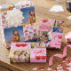 Valentine's Day wrapping paper with hearts and photos. Personalize with pictures of who the gift is for or, who the gift is from; whichever you prefer. Each sheet has a Valentines theme including pastel heart print on white, red cherry hearts on pink and happy valentine's day lettering in pink and red. The photo template will display your pictures in square format - if you have any problems with placement, try cropping your pic to a square before uploading.