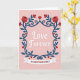 This Valentine’s Day card is set on a soft pale pink background that creates a warm, romantic mood. At the center, the words “Love Forever” appear in flowing white cursive, gently raised to stand out as the heart of the message. Surrounding the lettering is an elegant floral frame made of deep blue vines woven with bright red flowers. The blooms feature layered petals, while the curling vines add graceful movement. Small red heart shapes are tucked among the flowers, reinforcing the theme of lasting affection. Along the bottom, a white ribbon banner displays “VALENTINE’S DAY” in bold red letters. The blend of soft pink, rich blue, and vivid red creates a timeless card perfect for sharing enduring love. ❤️💌🍫