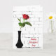 Red rose in a black vase on a brick wall pattern for Valentine's Day.