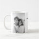 Coffee mug featuring the text "I love you" and a small, pink or custom color heart with your name below. On the sides are two photo templates.