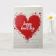 This striking card features a bold red heart at the center, rich in color and full of energy. The heart is decorated with expressive splatters and droplets, giving it a lively, artistic feel that adds motion and character. Across the heart, the words “happy hearts day” appear in flowing white script, creating a beautiful contrast against the deep red and adding warmth to the message. Behind it all is a textured, parchment-style background with faint gray lettering that feels timeless and thoughtful. The mix of bold color, expressive detail, and elegant lettering creates a powerful balance of emotion and style, making this card a meaningful way to share Valentine’s Day love and affection ❤️💌🍫.