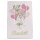 This personalized Valentine's Day medium gift bag features a balloon bouquet of heart shaped balloons in soft watercolor shades of pink and green with flowers on each side. Personalize the front and back with your choice of special holiday text.