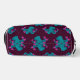 A playful underwater pattern featuring teal octopuses holding bright pink hearts, set against a deep maroon background with scattered air bubbles.