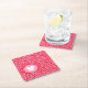 Dieser Untersetzer ist in einem festlichen Rosa- und Rotweindrucksdruck zu sehen. Passen Sie dieses Objekt an oder kaufen Sie, wie es ist. Bild