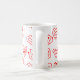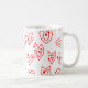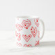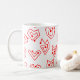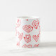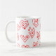Diese Tasse hat ein zeitgemäßes Valentindesign aus verstreuten roten Maiszenen auf einem weißen Feld.