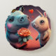 Valentinischer Hippo-Cartoon Rundes Kissen