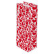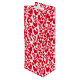 Geschenktasche aus Papier wird in einem rot-weißen Valentinherzen-Druck gezeigt. Weingröße angegeben. Passen Sie diese Geschenktasche an oder kaufen Sie, wie es ist. Lizenziertes Bild