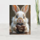 Ein flauschiger Hase mit einer Punktbogen-Polka-Krawatte hält eine herzförmige Schokolade mit den Worten "I Liebe You" fest. Der Insidertext ist editierbar.