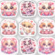 Niedliche Hunde feiern ihren Valentinstag. Sticker auch mit Blume und Herzen im Kawaii-Stil dekoriert, sodass großartige Geschenke für alle Lieben Hunde und Kinder.