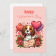 Valentins Tageskarte mit einem Beagle mit Blume und herzförmigen Ballons. Sie können jeden Text hinzufügen.
