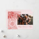 Die moderne Valentinstag-Urlaubskarte umrahmt das Foto mit einem Hintergrund aus weichem Rosa und einem Blumenstrauß in roter Wasserfarbe mit winzigen Herzakzenten. Der blassrosa Backer hat ein Muster von winzigen Herzen, um das Thema zu tragen, aber auch die Leichtigkeit der Handschrift einer Nachricht auf den Karten zu ermöglichen, um sie für jede Person besonders zu machen.