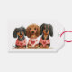 Niedliche Abbildung von Dackel-Hunden in Rot und Rosa für Valentinstag gekleidet. Ideal für Liebhaber von Haustieren während der Valentinstag-Saison.
