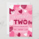 Little Sweet Heart Valentine's Day Rosa Geburtstag Einladung. Individuelle Name und Adresse Valentinstag 2. Geburtstag Party Einladungen, mit pastellrosa Hintergrund und rosa, weiß, magenta und bordeauxfarbene Herzen. leicht zu personalisieren Vorlage, für zwei Jahre alte Mädchen's 2. Geburtstag.