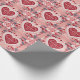 Eine hübsche Valentinstag Rolle von Packpapier, gemustert mit Herzen mit einem Imitat Spitzen-Umgebung, jedes gerahmt von Blätter und kleineren Herzen. Der Einfluss der Volkskunst verleiht dem Land seinen Charme. Set vor einem weichen rosa Hintergrund, ist dieses Design der perfekte Weg, um eine Touch Romantik zu Ihren Valentinstag Geschenken.