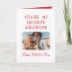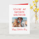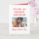 Valentine's Day Foto Funny You're My Favorite Girlfriend Grußkarte zeigt Ihr Lieblings-Foto mit dem Text "You're my favorite, Happy Valentine's Day" in der modernen roten Schrift Typografie mit einem einfachen roten Liebe Herz. Fügen Sie Ihren benutzerdefinierten Text zu personalisieren auf der Innenseite. Von Lieben geprägt. Perfektes Geschenk für Ihre Freundin zum Valentinstag. Entworfen von © Evco Holidays www.zazzle.com/store/evcoholidays