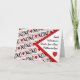 Der Tag des Valentines für Schwiegermutter, XOXO roter Schwarz-weißer Entwurf. Papiergrußkarte mit XOXO im Schwarzen, in den kleinen roten Herzen und in einem kleinen Muster im Hintergrund. Großes Dreieck auf rechter Seite mit Text nach innen. Ursprüngliche Entwurfscopyright © Shoaff Ballanger Studios.