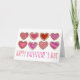 Valentinstag-Karte zeigt eine originelle Marker-Abbildung einer Reihe von herzförmigen mattierten und roten Zuckerkochen, mit HAPPY VALENTINE'S DAY in einem lustigen Schriftart.