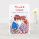 Eine "Happy Valentine's Day Card", die einen Anime-Jungen und ein Mädchen darstellt, die in hübschen Aquarellfarben-Blume herumkuscheln. Auf der Rückseite ist eine Farbseite, auf der Sie die Namen personalisieren können. Valentinstag-Karte für ihn oder sie.
