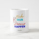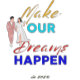 Das Bild zeigt eine Tasse mit weißer Keramik, auf der eine inspirierende Nachricht gedruckt wurde. Der Text auf der Tasse lautet: "Machen Sie unsere Träume wahr im Jahr 2025." Die Wörter "Make" und "Dreams" werden in einem kursiven Schriftart mit "OUR" und "HAPPEN" in fett gedruckten Großbuchstaben geschrieben. Die Phrase "in 2025" ist in einem kleineren, kursiven Schriftart unten geschrieben. Es gibt auch eine Abbildung eines Paares, in formaler Kleidung gekleidet, positioniert auf den links des Textes. Diese Tasse ist interessant und relevant, da sie als motivierend Punkt dient und den Anwender ermutigt, sich darauf zu konzentrieren, ihre Träume und Ziele bis zum Jahr 2025 zu erreichen.