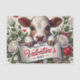 Ein niedliches Kalb, umgeben von Rose und Grün, mit einem Banner mit einer Valentinbotschaft, das Liebe und Wärme für den Urlaub ausstrahlt.