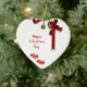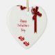 Un lindo adorno de cerámica para el día de San Valentín con una cinta roja y corazones rojos, perfect to como regalo para los seres queridos en el día de San Valentín. Este adorno de cerámica se puede personalizar en el área de texto y en la parte posterior para firmar el nombre del remitente y el destinatario.