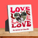 Wohngestaltung zum Valentinstag. Feiern Sie die Liebe mit dieser quadratischen Tafel mit einem Soal, personalisiert mit Ihren Namen oder Initialen und Ihrem Lieblingspärchen Foto auf einem Herzdesign mit rotem Text.