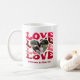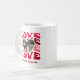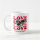 Feiern Sie die Liebe dieses Valentinstag mit einer maßgeschneiderten Tasse mit dem Wort "Liebe" in Rottönen und einem Herzdesign, das Ihr LieblingsFoto zeigt. Fügen Sie eine persönliche Touch hinzu, indem Sie die Namen des Paares für ein bedeutendes Geschenk für eine Freundin oder Ehefrau einschließen.