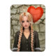 3D digitale Darstellung eines schönen Teenagermädchens in einem Retro-Kleid, das einen Ballon in einer Herzform auf einem Hintergrund aus Stein hält. Perfektes Valentinstag-Geschenk