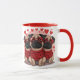 Niedliche Darstellung von Mops-Hunden in Rot und Rosa für Valentinstag. Ideal für Liebhaber von Haustieren während der Valentinstag-Saison.