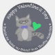 Raccoon Valentinstag Niedlicher Kid's Classic Round Sticker. Ein hübscher kleiner Aufkleber mit niedlichem digital illustriertem Waschbär mit einer Bug-Krawatte, die auf einem Kalkboard-Hintergrund ein grünes Herz trägt. Personalisieren Sie mit Ihrem eigenen Text. Ideal für Umschlag Aufkleber, bevorzugen Siegel, Umhüllung und vieles mehr.
