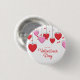 Wunderschön vektort illustrierter Valentinstag-Knopf, der rosa und rote Herzen auf schwarzen Saiten (vorne und hinten) mit dem Typ "Happy Valentine's Day" darstellt.