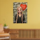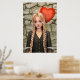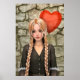3D digitale Darstellung eines schönen Teenagermädchens in einem Retro-Kleid, das einen Ballon in einer Herzform auf einem Hintergrund aus Stein hält. Perfektes Valentinstag-Geschenk