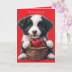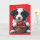 Niedlicher Border Collie Welpe mit einem Korb voller hübscher Schokoladenherzen für den Valentinstag. Im Inneren der Karte steht "I Liebe You More than Puppies" Personalisieren Sie mit Ihrem Namen und Gruß.