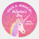 Valentinstag Rosa Glitzer Einhorn Personalisiert Runder Aufkleber