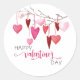 Dieser niedliche Urlaubsaufkleber verfügt über einen Zweig mit anhängenden Herzen in Rosa mit dem Text "Happy Valentine's Day".