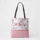 Dieses lustige, rosa und rote Herz-Muster ist perfekt für eine vollflächige Tasche mit Totdruck. Das untere Drittel (ca. 10 cm) ist ein koordinierender Feststoff mit einem dünnen Streifen. Tragetaschen sind ein lustiges saisonales ästhetisches Accessoire. Großes kleine Geschenk auch! AI unterstützte Grafik, die mit kommerziellem Einsatz erworben wurde. Kunstwerk: DreamCafeArt