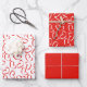 Valentinstag Urlaubskunst mit einem roten Herz wiederholt sich zufällig bei verschiedenen Drehungen zu einem zufälligen offenen Herzmuster. Das Set von drei umfasst: ein Blatt mit roten Herzen auf weißem Hintergrund, ein Blatt mit weißen Herzen auf rotem Hintergrund und ein Blatt mit solidem Rot. Diese sind Spaß für Geschenkverpackungen, Party-Dekorationen und Kunsthandwerk.