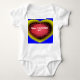 Ein Valentiner T - Shirt Säugling mit einem blauen Rücken mit einem gelben, schwarzen und roten Valentin, das hell und farbenfroh ist. Auf einem Valentinischen Säugling T - Shirt.